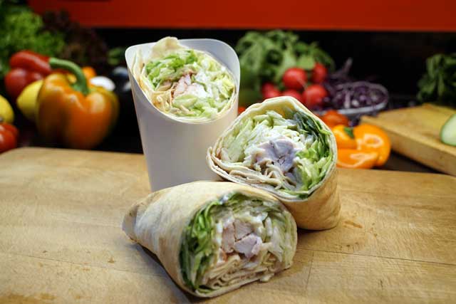 Jambon, fromage gouda, salade mixte, tomates, pesto.